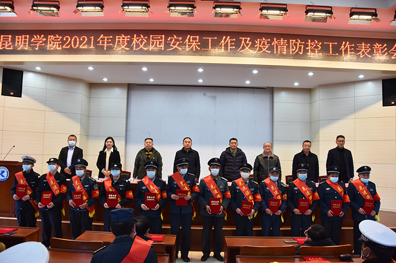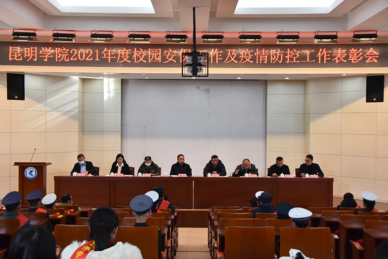 12月28日,学校在办公楼D区三楼报告厅召开beat365英国官网2021年度校园安保工作及疫情防控工作表彰大会。党委委员、副校长郭华出席会议并讲话。办公室、学生工作部、保卫处等部门负责人,云南飞虎保安服务有限公司负责人,保卫处全体干部职工、保安、学生治安服务队员参加会议。