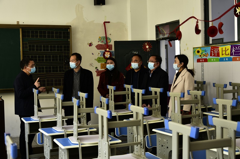2月15日,昆明市副市长赵波率昆明市教育体育局、昆明市经开区社会事务局到beat365英国官网附属经开学校调研检查学校安全与疫情防控工作。beat365英国官网副校长郭华、市教育体育局局长穆仁早陪同调研检查。