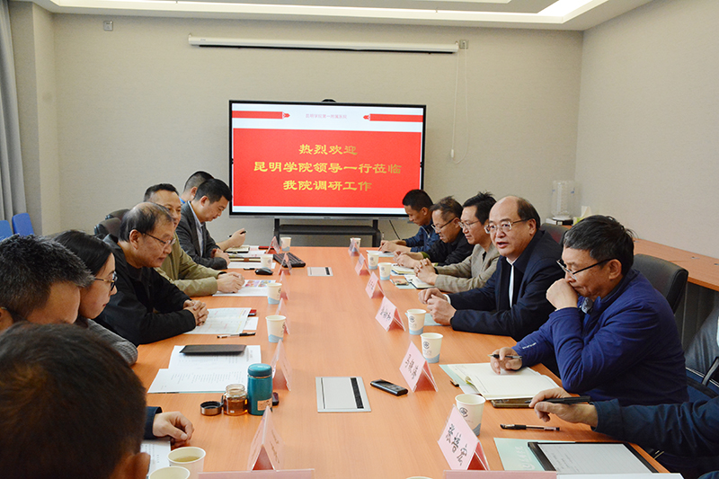 调研会上,昆明市第一人民医院张升宁副院长就院校合作、临床学院建设、学生实习实训等方面情况作了介绍。