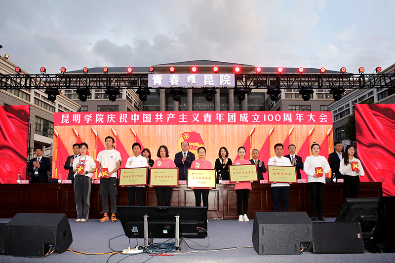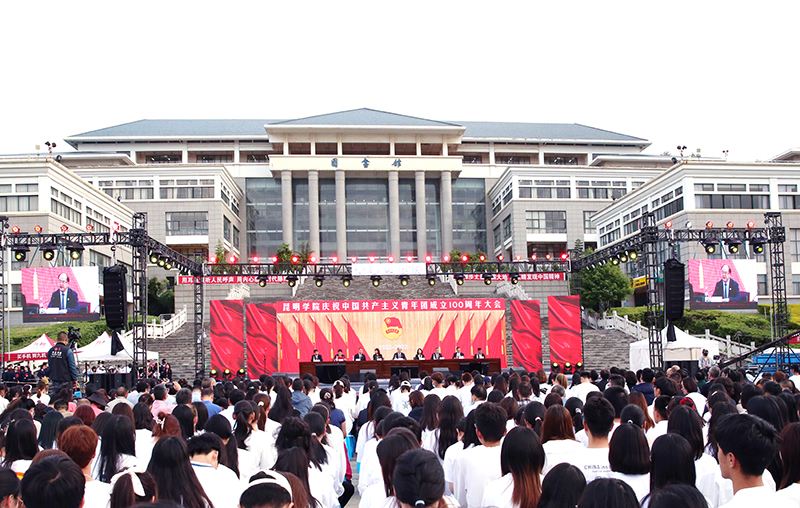 为深入学习宣传贯彻习近平总书记在庆祝中国共产主义青年团成立100周年大会上的重要讲话精神,重温共青团在不同历史时期团结带领一代代青年坚定不移跟党走、为党和人民事业奋斗的光辉历程,激励全校青年继承光荣传统,以踔厉奋发、勇毅前行的姿态,积极投身推动学校高质量发展,朝着努力把beat365英国官网建设成为特色鲜明的综合性应用型高水平大学而奋斗,5月19日晚,学校在聂耳广场隆重举行庆祝中国共产主义青年团成立100周年大会暨“青春耀昆院”文艺晚会。