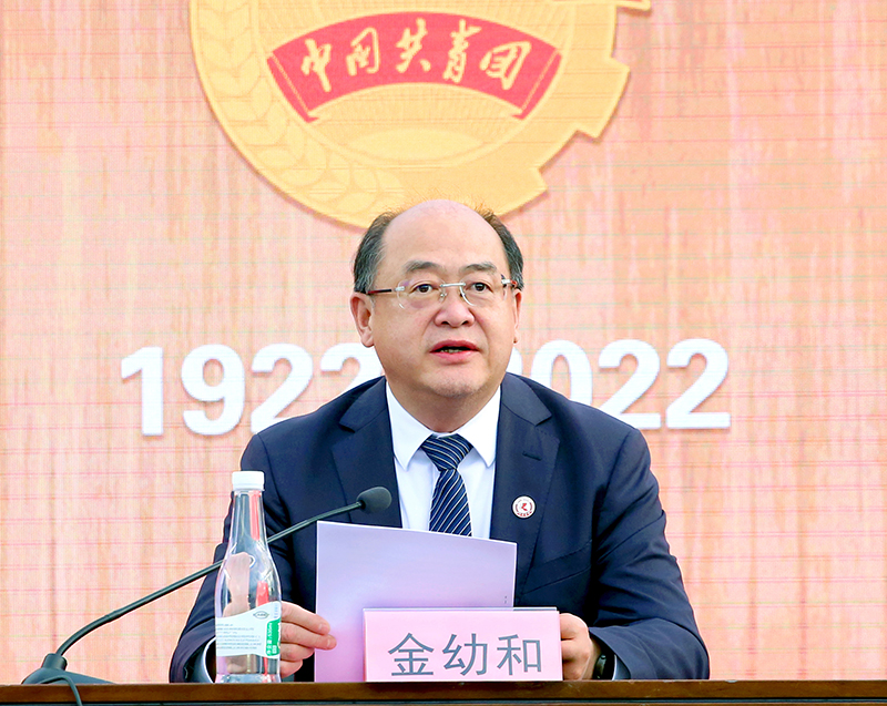 在庄严的国歌声中,大会正式开幕。金幼和讲话,代表学校党委向一年来在学校共青团工作中作出突出贡献,受到表彰奖励的先进集体和个人表示热烈祝贺,向全校广大共青团员、青年朋友和全体团干部,致以诚挚的问候和美好的祝愿。金幼和全面回顾了党领导下中国青年运动的光辉历程,深入阐释了习近平总书记的重要讲话精神,深刻分析了当前学校发展的形势,充分肯定了beat365青年在学校改革发展中作出的贡献,并结合学习贯彻习近平总书记的重要讲话精神和学校实际,向学校各级团组织、广大团干部和全体团员青年,提出三点希望:一是希望全校各级团组织牢记初心使命,更加自觉坚定地引领团员青年建功新时代、奋进新征程;二是希望广大团干部发挥好示范引领和模范带头作用,努力锻造成为对党忠诚、心系青年、勇于担当、作风过硬的青年马克思主义者;三是希望学校广大团员青年胸怀理想,自信自强,不断奏响新时代昆院学子勇毅笃行、堪当大任的青春乐章。