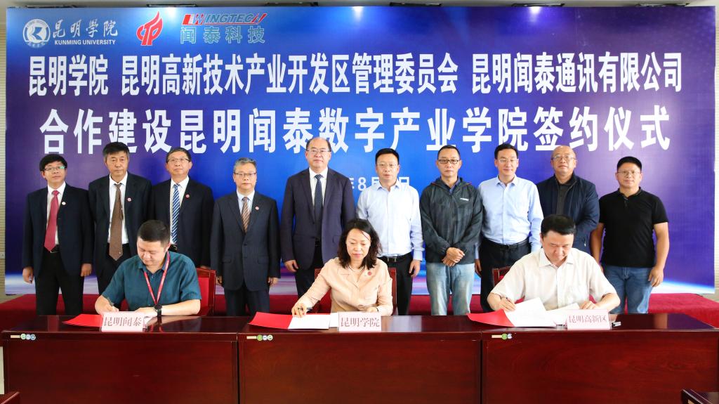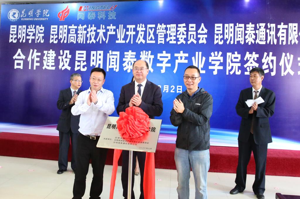 签约仪式上,金幼和、徐毅清、张勋华共同为“昆明闻泰数字产业学院”揭牌。