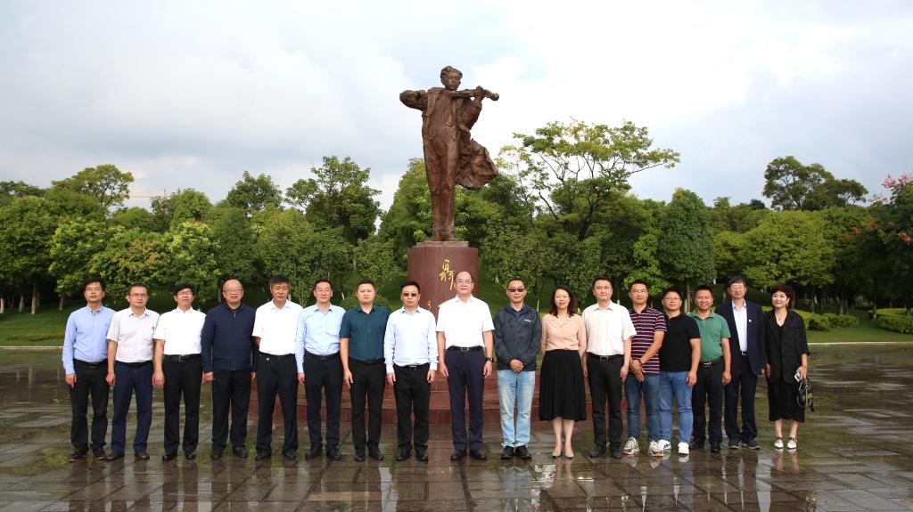 签约仪式后,昆明高新区、闻泰公司领导、嘉宾在校领导陪同下参观了校园,并在聂耳像前合影留念。