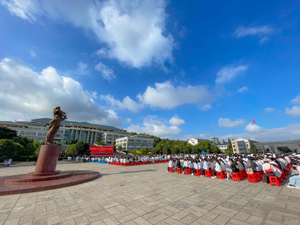 9月19日上午,beat365英国官网2022级新生齐聚聂耳广场,隆重举行开学典礼。