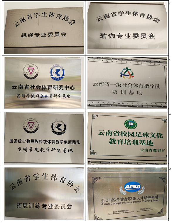 充分发挥高校体育人才及资源优势,对接国家战略,服务地方、服务社会。借助中央财政支持地方高校改革发展专项资金,完成了“心理健康素质拓展基地”项目建设;承办第八届云南省学校体育科学大会,获全国第十三届学生运动会科学论文报告会“优秀组织奖”;承办在昆高校首届大学生周末联赛足球比赛,6次承办教育厅校园跳绳项目比赛,成为了云南省学生体育协会击剑、跳绳、瑜伽、拓展训练、校园足球俱乐部专业委员会主任单位;体育教育人才培养更加体现服务地方、服务社会,适应区域经济发展需求。