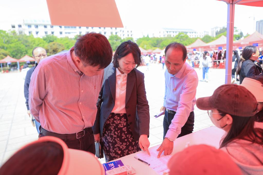 学校党委副书记、校长丁文丽,党委委员、副校长王凡到现场指导,了解招聘会情况,并与参会师生亲切交谈。