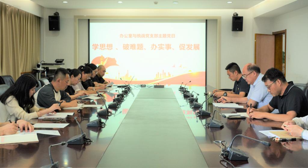 金幼和充分肯定了办公室与统战部支部在围绕中心、服务大局、推进学校高质量发展中所发挥的作用和作出的贡献。他指出,办公室工作职责重要,工作辛苦,要进一步提高政治站位,着力提升支部的凝聚力和战斗力;要进一步发挥枢纽作用,着力提高服务质量和水平;要进一步凝聚力量,着力在推动学校高质量发展工作上作出积极贡献。
