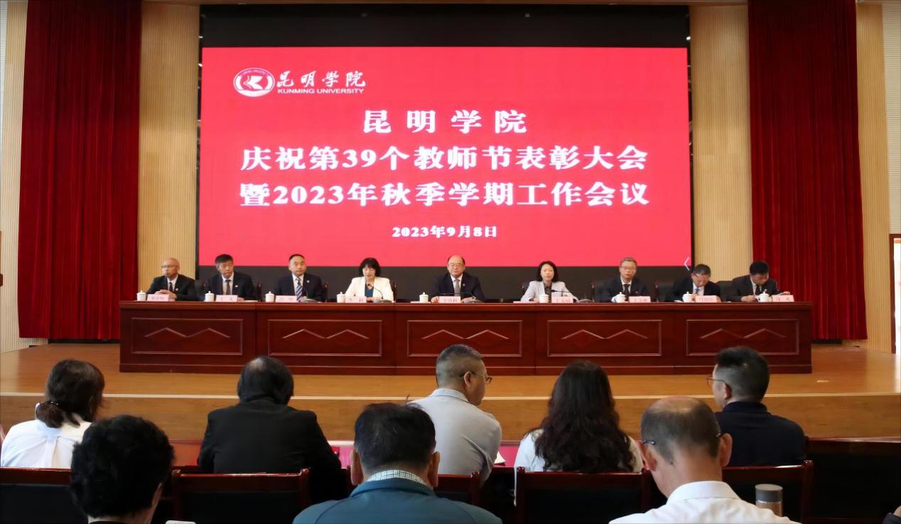 9月8日,在第39个教师节到来之际,学校召开庆祝教师节表彰大会暨2023年秋季学期工作会,对在学校建设发展中作出突出贡献的集体和个人进行表彰,总结学校上半年工作,安排部署新学期工作。会议强调,要深入学习贯彻习近平新时代中国特色社会主义思想和党的二十大精神,巩固深化主题教育成果,贯彻落实全省教育发展大会和昆明市教育发展大会精神,抓紧抓实学校高质量发展三年行动计划,大力弘扬人民教师爱党爱国、潜心育人、甘于奉献的精神,充分发挥先进典型示范引领作用,奋力开创建设特色鲜明的综合性应用型高水平大学新局面。