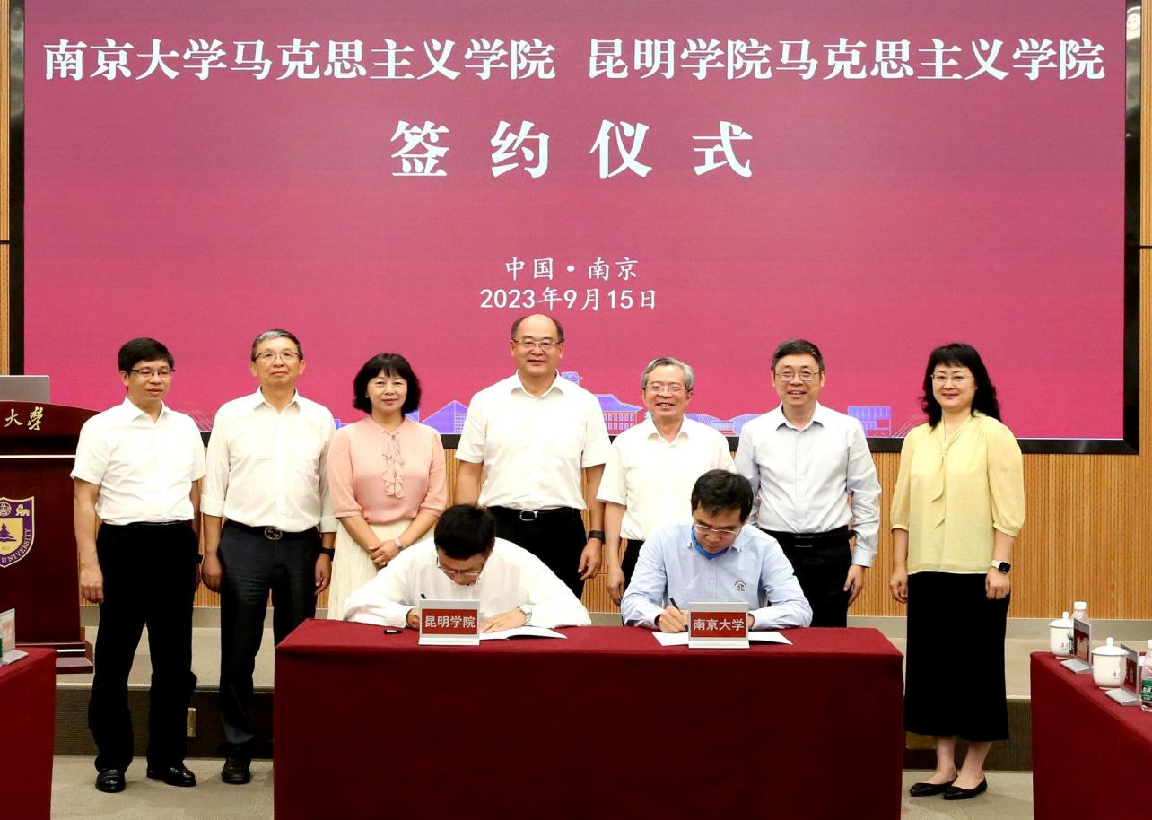 会上,两校签订了《南京大学马克思主义学院对口支援beat365英国官网马克思主义学院建设框架协议》。双方与会部门、学院主要负责人进行了深入交流。