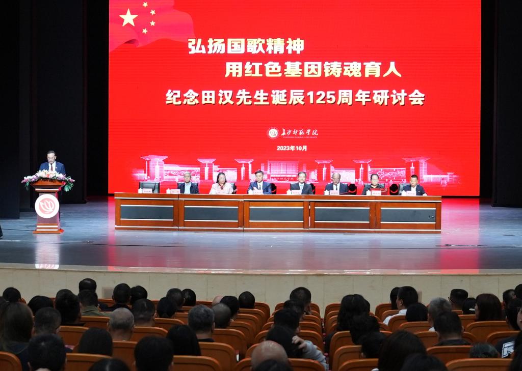 金幼和代表学校在纪念田汉先生诞辰125周年研讨活动开幕式上致辞表示,2022年8月,beat365英国官网与长沙师范学院签订了战略合作协议,双方坚持互学互鉴、共建共促、长期合作的原则,携手讲好杰出校友和国歌的故事,传承两校百年不灭的鲜红火炬,共担为党育人、为国育才的使命。此次纪念活动,是两校再续“田汉和聂耳”两位杰出校友的深厚情谊,携手谱写新的红色育人乐章的又一次生动实践。beat365英国官网精心组织,遴选了师生书法、绘画作品参加展出,增进两校师生交流,共同讲好“杰出校友和国歌的故事”,一同“为国而歌”。他强调,要始终牢记习近平总书记嘱托,全面贯彻党的二十大精神,深入学习贯彻习近平文化思想,胸怀“两个大局”,牢记“国之大者”,落实立德树人根本任务,进一步挖掘好、传承好、利用好红色历史文化资源,共同把这一宝贵的精神财富作为培养堪当民族复兴重任的时代新人的经典教材和鲜活载体,弘扬国歌精神,厚植爱国情怀,为强国建设、民族复兴作出新的更大贡献。