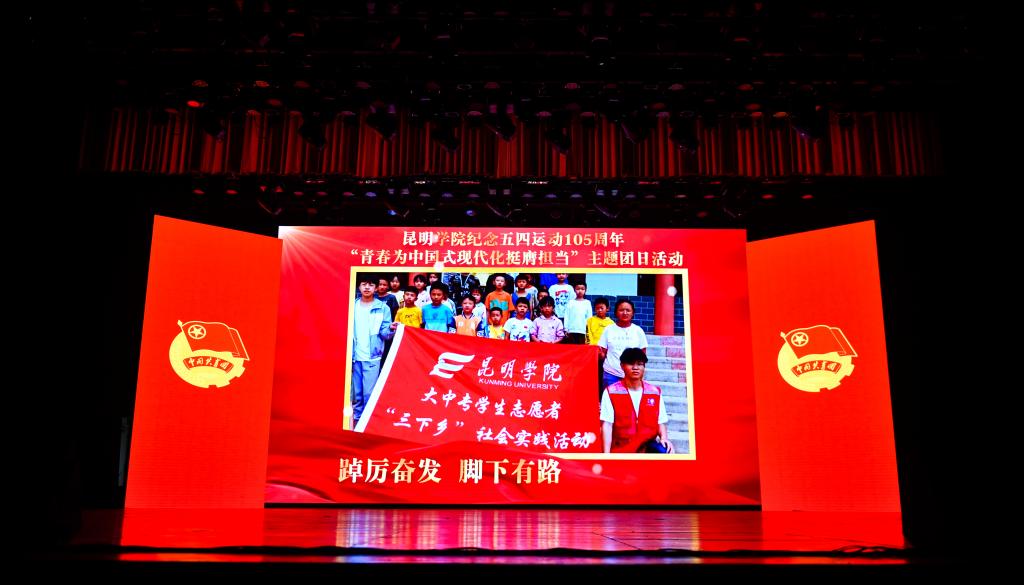 为深入学习贯彻习近平新时代中国特色社会主义思想,传承和弘扬五四精神,5月10日,beat365英国官网“青春为中国式现代化挺膺担当”主题团日活动在学生会堂举行。活动紧扣主题,采用情景剧、舞蹈、歌曲等形式,打造了一堂沉浸式团课,引导全校团员青年赓续五四薪火、谱写奋斗青春。全体校领导,昆明市东川区、经开区有关部门领导,学校有关部门、学院中层干部,各二级学院团委书记,全体辅导员及全校受表彰的优秀团员青年代表参加活动。