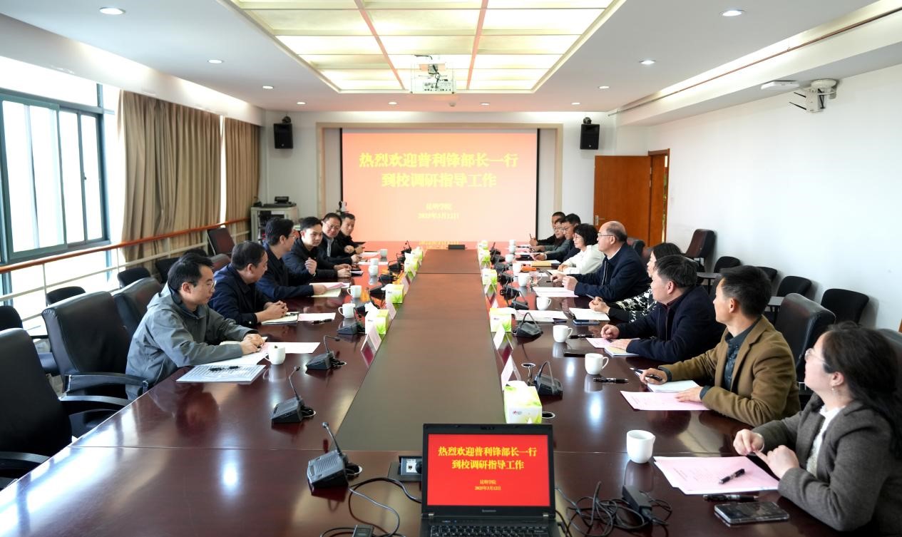 3月12日下午,昆明市委组织部部长普利锋率队到学校调研指导工作,重点围绕人才引进、毕业生就业及校地合作等议题展开座谈交流。学校党委书记金幼和,党委副书记、校长丁文丽,党委委员、副校长彭志远;昆明市委组织部、人力资源和社会保障局相关负责人参加座谈。