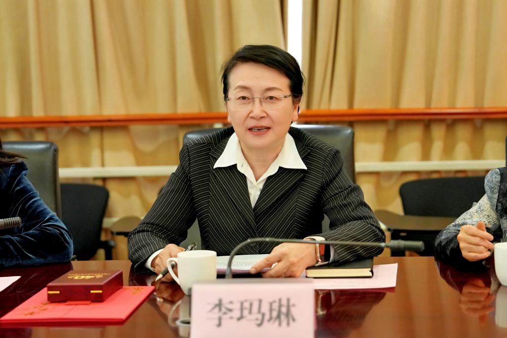 学校党委书记金幼和、党委副书记、校长丁文丽、党委副书记李莉与调研组开展座谈交流。丁文丽主持会议。