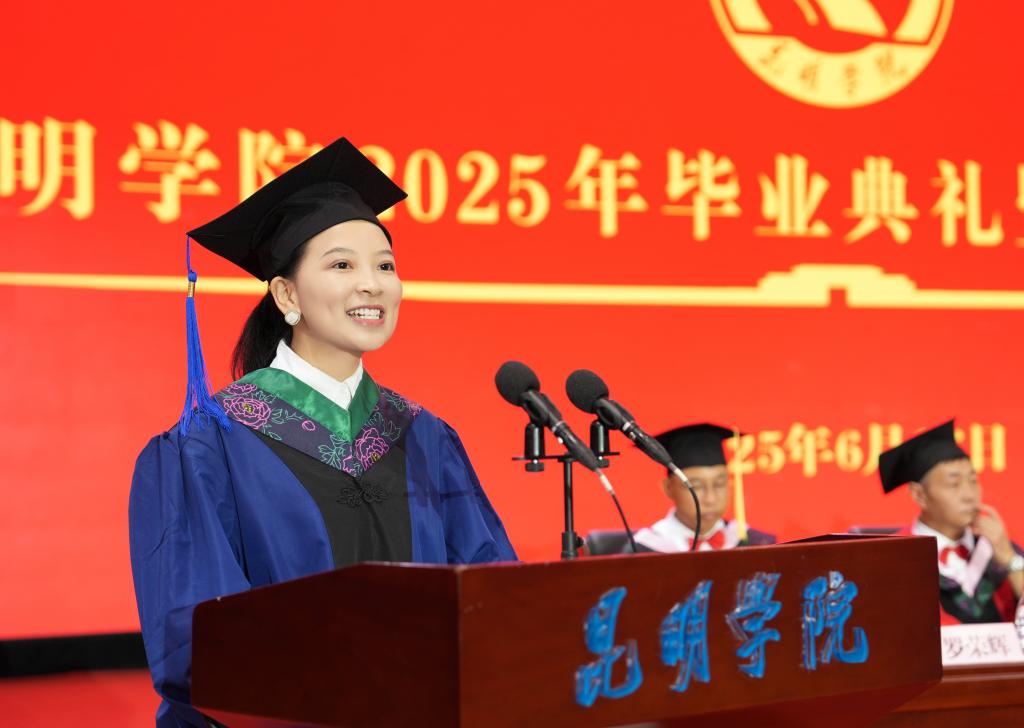 奋斗的青春最美丽,努力的人生最有意义。丁文丽寄语毕业生们,要志存高远、脚踏实地,铭记“明德至善 知行利物”校训,传承弘扬杰出校友聂耳精神,厚植家国情怀,努力把个人的奋斗融入到强国建设、民族复兴的伟大事业,担当民族复兴重任。要开拓创新、勇毅前行,永葆探索未知领域的好奇心和读懂社会、时代这本“无字之书”的热情,锲而不舍、上下求索,不断增强创新精神和实践能力,努力在瞬息万变的时代洪流中开辟新赛道、开拓新事业。站在人生的新起点,希望同学们以理想为帆、信念为舵,在时代的广阔天地中淬炼本领、风雨无阻、乘风破浪、凯歌前行。