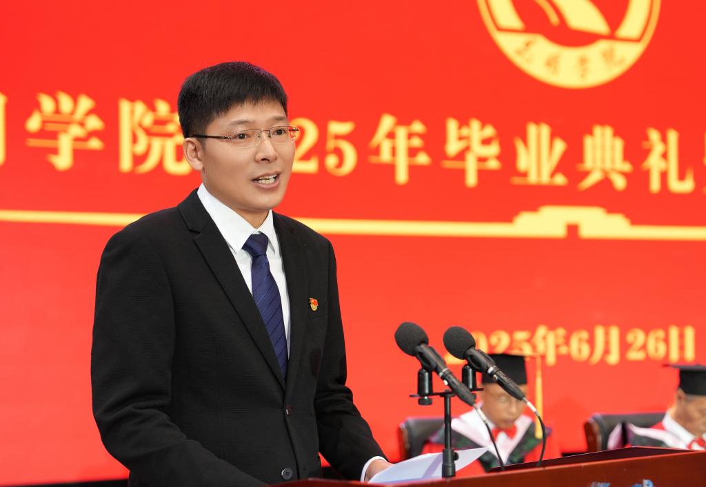 优秀毕业生代表在典礼上发言,表达了对母校的感恩、对师长的敬意,以及对同窗的祝愿。教师代表向2025届毕业生表达了老师们的美好期许与殷殷祝福。