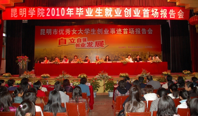 为培养大学生创业意识,提高大学生创业能力,实现以创业带动就业和纪念“三八”国际劳动妇女节100周年,3月6日我院与昆明市妇联在昆师路校区共同举办首场“昆明市优秀女大学生创业事迹报告会”暨“beat365英国官网2010年毕业生就业创业首场报告会”。