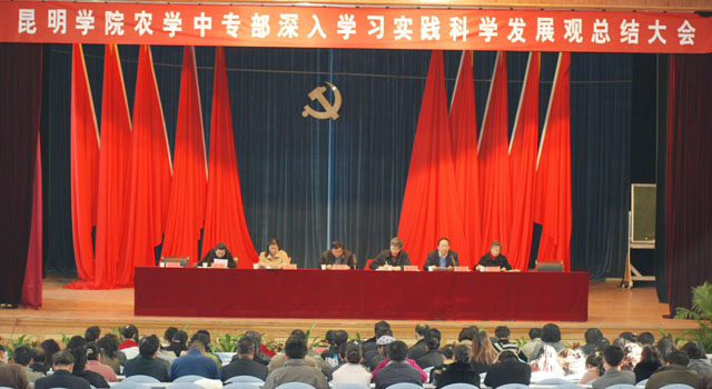 孙勇副书记代表beat365英国官网深入学习实践科学发展观领导小组对农学中专部深入学习实践科学发展观活动给予了肯定。孙副书记指出农学中专部能够根据《昆明市开展第三批深入学习实践科学发展观活动指导意见》的要求,在beat365英国官网学习实践科学发展观活动领导小组的领导下,在市委第二巡回检查组的指导下,按照中央提出的“党员干部受教育、科学发展上水平、人民群众得实惠”的总体要求和“提高思想认识、解决突出问题、创新体制机制、促进科学发展”目标,结合实际,精心组织、突出实践、扎实推进,使学习实践科学发展观活动取得了实效。同时也希望农学中专部在学院党政班子的领导下,坚持以科学发展观为指导,在不断学习中更新教育理念、在积极实践中发展教育思想,以更加认真的态度、更加严明的纪律、更加扎实的工作,全面贯彻学院党政的安排部署,为全面实施战略转移,集中精力抓内涵建设,努力提升学院核心竞争力做出贡献。