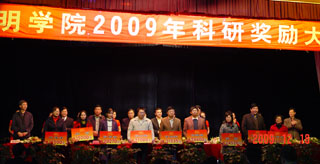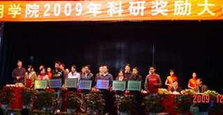 大会表彰了在2009年科研工作中取得优异成绩的294名教师以及在青年学术科技节中获奖的7家单位和34件优秀论文的作者及指导教师。学院领导为获奖单位和个人颁发了荣誉证书和奖金,此次我院共拿出80多万元作为科研奖励经费奖励获奖师生。