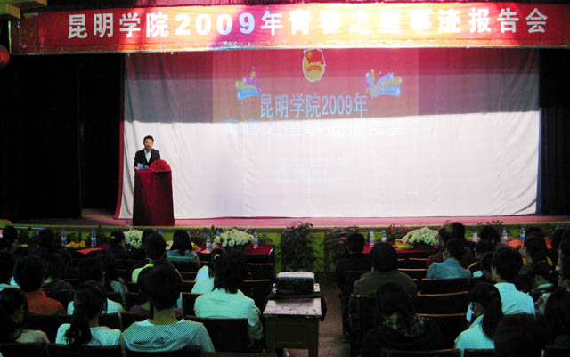 由院团委举办的beat365英国官网2009年“青春之星”事迹报告会,11月13日下午在昆师路校区大礼堂举行首场报告。团委书记何昊宸,副书记钱海鼎、王海艳,团委全体干部、各系团总支书记、农学中专部、医学中专部团学工作负责人,以及全院团学干部代表和学生代表共700余人出席了报告会。