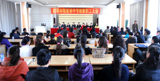 陈世波院长在会上作重要讲话。陈院长首先对两校成为beat365英国官网大家庭中的成员表示欢迎,同时感谢两校领导班子和全体教职员工,在合并期间积极按照市委市政府和学院有关指示、工作部署所做的工作,肯定两校为顺利并入beat365英国官网所做的工作和努力。他说农学和医学中专部都有50多年的办学历史和丰富的办学经验,为昆明市培养了大批的农学和医学技术人才,为我省的经济社会发展,尤其在培养农业和医疗运用型技术人才上做出了很大贡献。他指出,在两校区分别召开教职工大会,标志着两校合并到beat365英国官网的各项基础工作圆满告一个段落,两校工作已进入学院统一部署轨道上来,今后要适应学院的大发展,全面实施战略转移,集中精力抓内涵建设,努力提升学院核心竞争力。陈院长最后对农学、医学中专部负责人和广大教职工提出五点希望:一是统一思想。统一思想对合并非常重要,是工作顺、人心和、事业兴的关键。要把思想统一到市委市政府的指示上来,统一到今天学院党委在教职工大会的工作部署上。二是提高认识。提高认识是做好各项工作的前提和保证,希望学院广大干部和教职员工要把认识提高到高等教育上来,转变到提升本、专科的办学和教育质量上来。三是增进团结互相学习。合并完成后的beat365英国官网是一所学科齐全的综合性应用型本科院校,在文化和思想上形成了多校融合的独特的多元文化,这些都需要有一个思想的适应和转变过程,需要我们在工作中团结一致,互相学习,这样才能变不利为有利,变阻力为动力。四是加强建设。beat365英国官网的合并工作及今后的建设发展,一直得到市委市政府的关怀和大力支持。学院今后的建设发展,主要应放在学科与专业建设上,进一步提升本、专科办学和管理水平,加强科研建设,做好社会服务工作,为社会培养更多的适应社会需求的应用型人才。