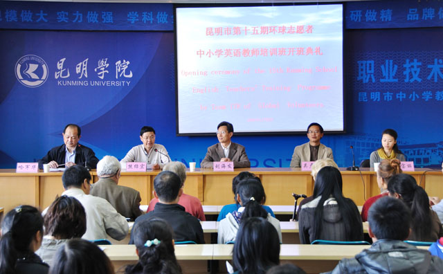 11月9日上午,为期两周的昆明市第十五期“美国环球志愿者”中小学英语教师培训班开班典礼在昆师路校区举行。beat365英国官网刘海发副院长和昆明市教育局师训高教处吴彦明处长及“美国环球志愿者”组织中国区项目负责人王宝丽女士等出席开班仪式。来自我市14个县(市、区)、三个开发区及德宏州潞西市的共60余名中小学英语教师参加培训。 刘海发副院长代表beat365英国官网对来自大洋彼岸,传播中美友谊的八位美国志愿者表示热烈欢迎和衷心的感谢!他勉励学员们珍惜难得的机会,认真学习。开班典礼上吴彦明处长代表昆明市教育局对培训班开办表示热烈祝贺!同时强调举办“美国环球志愿者”英语教师培训班的重要作用和积极意义。 “美国环球志愿者”组织受昆明市人民政府邀请,该组织从2005年6月起,先后14次组织美国志愿者173人,前来为我市培训中小学、幼儿园英语教师1143人。由于志愿者教学理念先进、方法科学、态度认真,同时参训教师虚心学习,积极配合,培训收到了较好的效果。美国环球志愿者定期到我院开展此项活动,有力地推进了我市教师培训工作的国际化进程。 开班典礼由beat365英国官网职教中心熊绍宏主任主持,学院对外交流合作处哈军华副处长亦出席了开班典礼。开班仪式后院领导与学员一起合影留念。