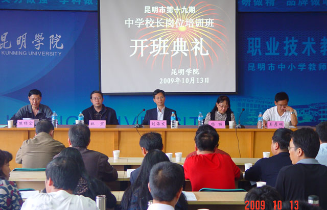 10月13日上午,昆明市第十九期中学校长岗位培训班在beat365英国官网昆师路校区举行了开班典礼。云南省教育厅师范处杨丽处长、昆明市教育局姚宏副书记、副局长、师训高教处吴彦明处长、beat365英国官网刘海发副院长以及职业技术教育中心的各位领导出席了开班典礼。来自昆明市的76位、德宏州潞西市的4位共80位中学校长(书记)将在我院参加为期三个月的脱产阶段学习。