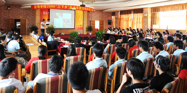 10月16日下午,院团委2009年“三下乡”社会实践活动成果汇报会在人民西路校区举行。团市委机关党总支书记王彦彦,团市委学校部部长栾丽华,学院党委宣传部张立新部长,教务处郝旭霞处长,机关党总支梁艳萍书记,保卫处方永昆副处长,学生处罗进副处长等出席了汇报会,会议由团委书记何昊宸主持。 我院本次“三下乡”根据党委宣传部、学生处、院团委联发的《关于开展beat365英国官网2009年大学生暑期社会实践活动的通知》的文件精神,于7月上旬正式启动,历时7天。活动以“高扬爱国主义旗帜、服务科学发展大业”为主题,本着“讲求实效、就进就便、针对性强、辐射面广、安全第一”的原则,按照“全面动员、普遍参与、点面结合、重点突破”的要求,以系为单位,结合本系专业特色,学院共组织了6支志愿服务队到昆明周边县市区基层农村开展社会实践与志愿服务活动。 汇报会上,来自自机系、旅游系、生科系、经济系、计网系、政法系的老师和学生代表,分别对此次“三下乡”社会实践活动作了汇报与成果展示。各汇报系结合系部的专业特色,开展的实践活动形式多样、成果丰富,能够用理论指导实践,用调研成果服务农村、服务社会、服务昆明的实践活动。 党委宣传部部长张立新代表学院活动领导小组讲话肯定:6个系的汇报都反映出了此次社会实践主题突出,准备充分,各系领导和相关老师高度重视,积极支持,责任心强,有的亲自带领学生到农村指导调研服务;各系结合专业特长开展科学发展观政策、普法、科普、环保宣传,进行家电维修、爱心捐赠、社会调研、参观访问、劳动体验、文体活动等,既充分认识社会和乡情,也找正自己的角色位置,以我所能服务社会,为今后发展积累经验,为学院服务地方经济发展,锻炼培养了师生干部,宣传展示了学院办学实力和育人水平,与地方建立良好合作关系,做出实绩。衷心感谢团市委领导和相关处室领导的关心支持,衷心感谢6支小分队的系领导、老师、同学的艰苦努力和辛勤奉献。 会上,团市委机关党总支书记王彦彦作了重要讲话。王书记对我院的“三下乡”社会实践工作给予了充分肯定,她指出,我院的“三下乡”社会实践活动准备充分、成果丰富,特别是通过这次活动让同学们了解了社情民意,倾听到了基层人民群众的心声,找到了奋斗和努力的方向,确实增强大学生服务社会、报效祖国责任感和使命感,发现问题、分析问题、并解决问题的能力得到了进一步的提高,砥砺了品格、磨练了意志、收获了真知、陶冶了情操、树立了理想。这次社会实践活动既是一次同学们了解社会、服务社会的尝试,更是一次理论与实践相结合的马克思主义的第二课堂。 此次“三下乡”社会实践活动是学院团委认真学习贯彻十七大精神,深入开展学习实践的科学发展观活动的重要举措,也是加强和改进大学生思想政治教育、帮助大学生在实践中深刻理解科学发展观重大意义、发挥大学生人才智力优势、服务新农村建设的有效途径。相信此次活动的开展,将为大学生体验农村、融入社会搭建平台,为我院团学工作的不断推进和现代新昆明建设贡献力量。