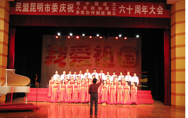 民盟beat365英国官网总支组织40人参加演出,以一曲《中国,中国,鲜红的太阳永不落》大合唱,表达了对祖国的热爱和对人民政协、多党合作制度的拥护。