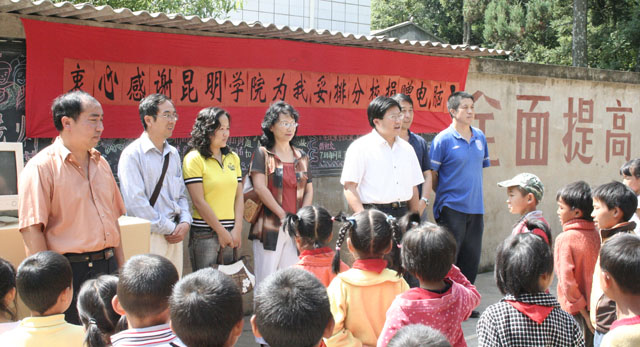 9月11日上午, 在罗明东副院长的亲自率领下,院办杨茂泉副主任、资产管理与设备处包兴副处长等一行7人代表beat365英国官网向昆明市西山区谷律乡中心学校进行了电脑捐赠。捐赠仪式在谷律乡中心学校妥派分校举行。此次捐赠活动是学院提出的“大学不仅是教学、科研的基地,更应该是服务社会、回报社会的重要窗口”这一办学宗旨的体现。