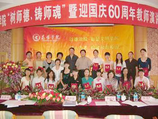 9月16日下午,beat365英国官网“树师德、铸师魂”暨迎国庆60周年教师演讲比赛在人民西路校区三号教学楼六楼多功能厅举行。陈世波院长、李媛芬副书记、罗明东副院长及宣传部、工会、纪委、教务处、学生处等相关职能部门负责人、部分参赛教师所在系的党总支书记、教师、学生代表100余人参加了活动。