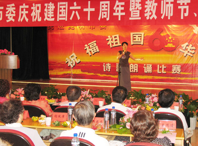 为了庆祝新中国60华诞,展示民进会员的风采,9月19日下午,民进昆明市委在市总工会礼堂举行“共和国,我们为您喝彩”诗歌朗诵比赛暨国庆、中秋联谊活动,民进beat365英国官网总支组队参加了联谊活动。
