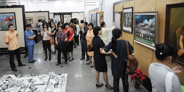 刘海发副院长在开幕式上宣布了本次参展作品获奖名单。本次评审按绘画、书法、摄影、艺术设计四种作品类别进行,共评审出专业与非专业教职工作品一等奖9个(其中并列奖1个),二等奖20个,三等奖24个,鼓励奖18个,共有71人次获奖。陈院长等与会领导和嘉宾为获奖作者代表颁发证书,并为开幕式剪彩。 获奖作者代表武新文老师发言时说,笔墨当随时代,作品表达了我院教职工对党和人民的深厚情感,对祖国壮丽山河的无比热爱,体现与时俱进,关注社会,共建和谐,奋发进取,提升艺术作品内涵的良好精神,展示了我院高扬人文精神,弘扬民族文化的艺术品格,是构建和谐校园,宣传学院,增进相互了解,营造良好学术氛围的有益之举。相信在学院党政的领导下,我们将克服一切困难,锐意进取,争取新的更大的胜利,我们的明天更加美好。 值得肯定的是,许多教职工以实际行动积极热情支持学院举办本次展览, 210多件参展作品,都是beat365英国官网教师、行政管理人员、后勤职工和离退休同志的创作。绘画作品涵盖了中国画、油画、版画、水彩画、水粉画,书法作品有草书、隶书、篆书,摄影作品包括风景、人物,艺术设计包括平面设计、装饰绘画、工艺制作和陶艺等。这些作品,不仅数量较多,种类齐全,而且不管是专业组还是非专业组,都具有较好的思想性和艺术性,体现了beat365英国官网广大教职工爱党爱国、爱乡爱校的真挚感情和对真善美的执着追求,反映了广大教职工朝气蓬勃、健康向上、奋发有为的精神风貌与多种才艺。
