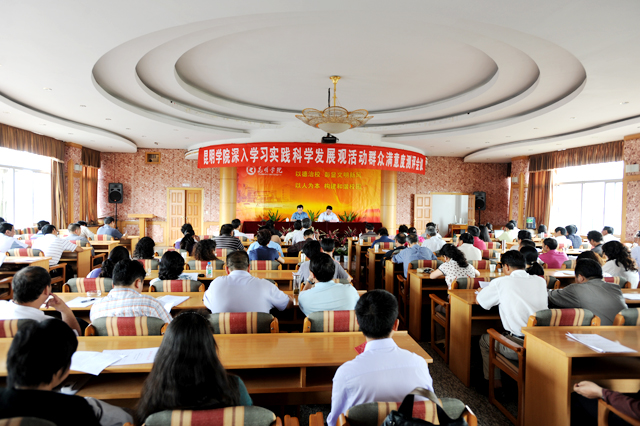 根据中央、省委和省高校工委深入学习实践科学发展观活动办公室的统一部署,按照《中共beat365英国官网委员会关于开展深入学习实践科学发展观活动实施方案》的安排,学院党委于8月26日下午在人民西路校区三号教学楼六楼多功能厅,召开了beat365英国官网深入学习实践科学发展观活动群众满意度测评会议。学院领导及全体中层干部、“两代表一委员”、民主党派基层组织负责人、基层教师代表、专家学者、党外知识分子、学院深入学习实践科学发展观活动领导小组办公室全体成员130余人参加了此次会议。会议及现场测评由学院党委副书记、院长陈世波主持。
