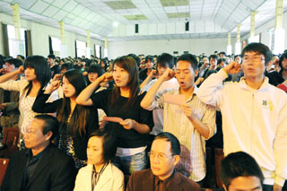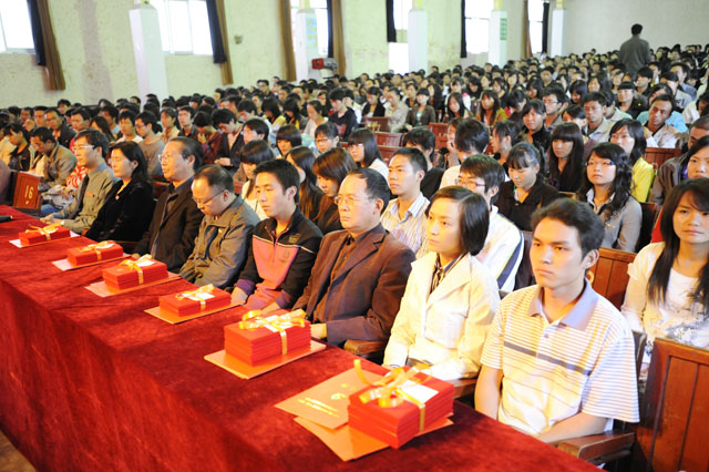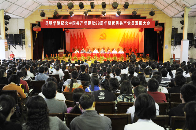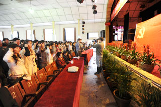 昆师路校区大礼堂被鲜花装扮得十分漂亮,主席台背景墙中央的党徽在灯光和彩旗的映衬下显得格外醒目,整个会场座无虚席,气氛热烈而庄重。大会在雄壮的国歌声中开始。首先举行的是新党员入党宣誓仪式。在组织部长董建华同志带领下,462名预备党员面向党旗庄严宣誓,全体党员重温了对党的誓言。认真做好党员发展工作,是基层党组织的一项经常性任务,也是学院党建工作的重要内容。我院各级党组织始终遵循“坚持标准、保证质量、改善结构、慎重发展”的方针,加强党员发展工作,尤其重视在大学生和青年教师中发展党员。今年以来,全院共发展党员555人,为党员队伍增添了生机和活力。