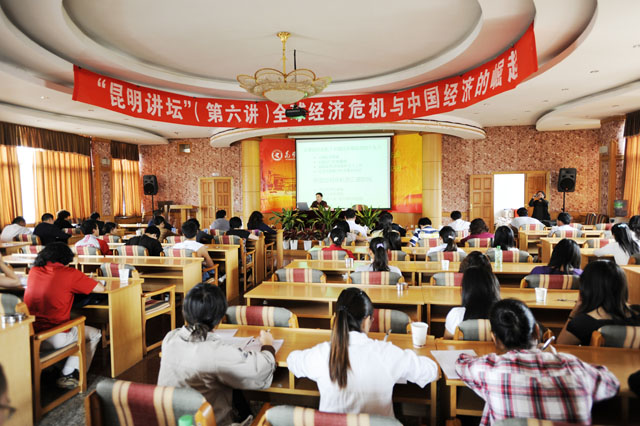 7月1日下午,我院邀请美国哈佛大学博士、美国伊利诺伊州立大学张宏霖教授主讲“昆明讲坛”第六讲,主题为:“全球经济危机与中国的崛起”。报告会由昆明科学发展研究院办公室主任管彦平主持。beat365英国官网院长陈世波、副院长熊晶及部分系室领导、教师和学生代表现场聆听了张教授的精彩报告。