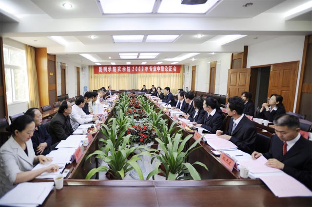 原昆明市农业学校校长黄鹤平代表学院在论证会上作专业申报分析汇报。汇报从学科专业建设与发展的指导思想、学科专业建设的原则和目标、学校的硬件和软件现状、专业市场分析等方面入手向各位专家作了详实的分析汇报。对照教育部《高等学校本科专业设置规定》(教高[1999]7号)和《普通高等学校高职高专教育专业设置管理办法(试行)》(高教[2004]4号)的标准和条件,beat365英国官网申报设置的农科类1个本科专业、6个专科专业已已基本具备开设条件,可以申报。