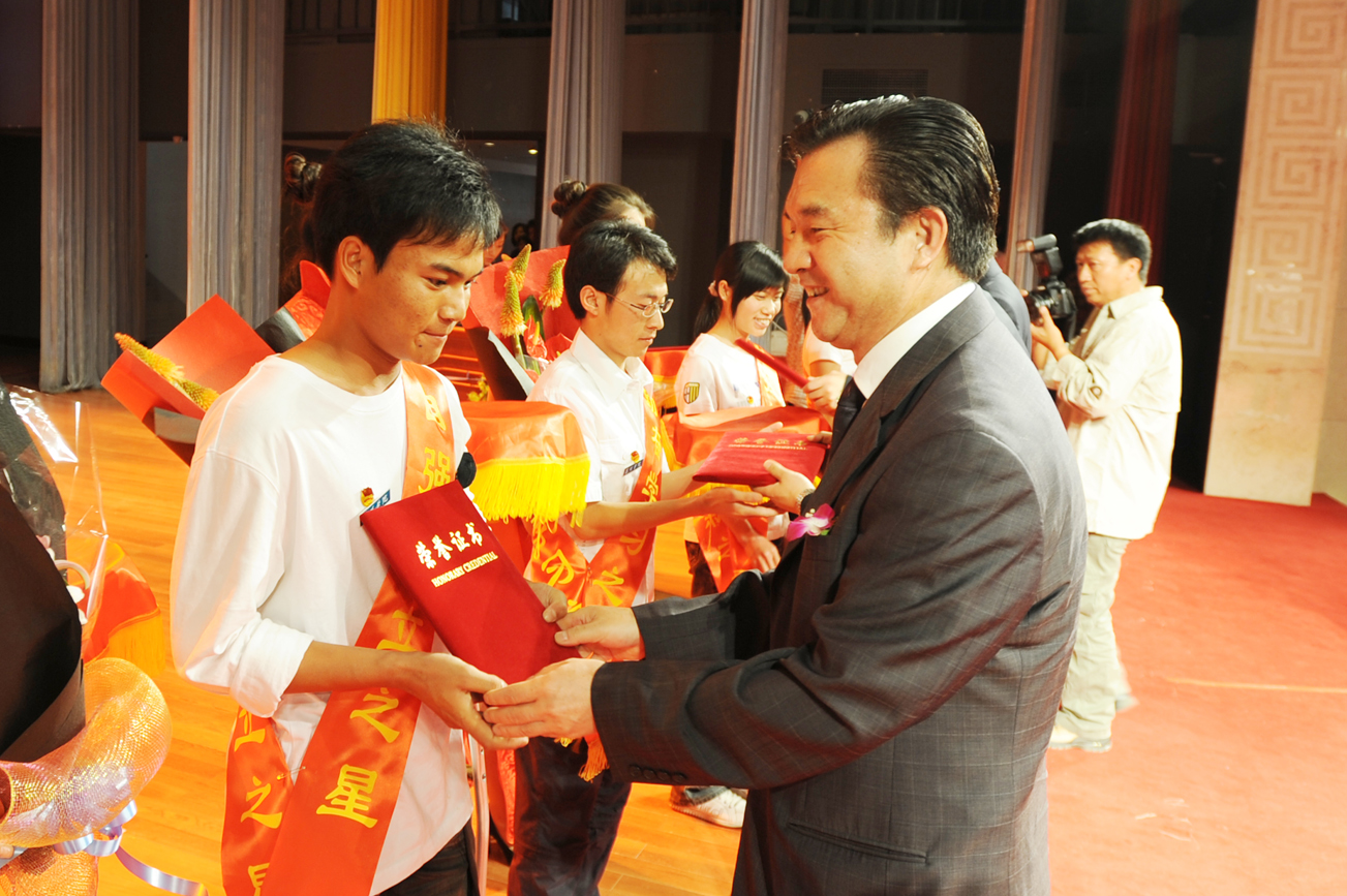 5月15下午,beat365英国官网“青春在这里闪耀”纪念“五· 四”运动90周年暨表彰颁奖典礼在胜利堂隆重举行。