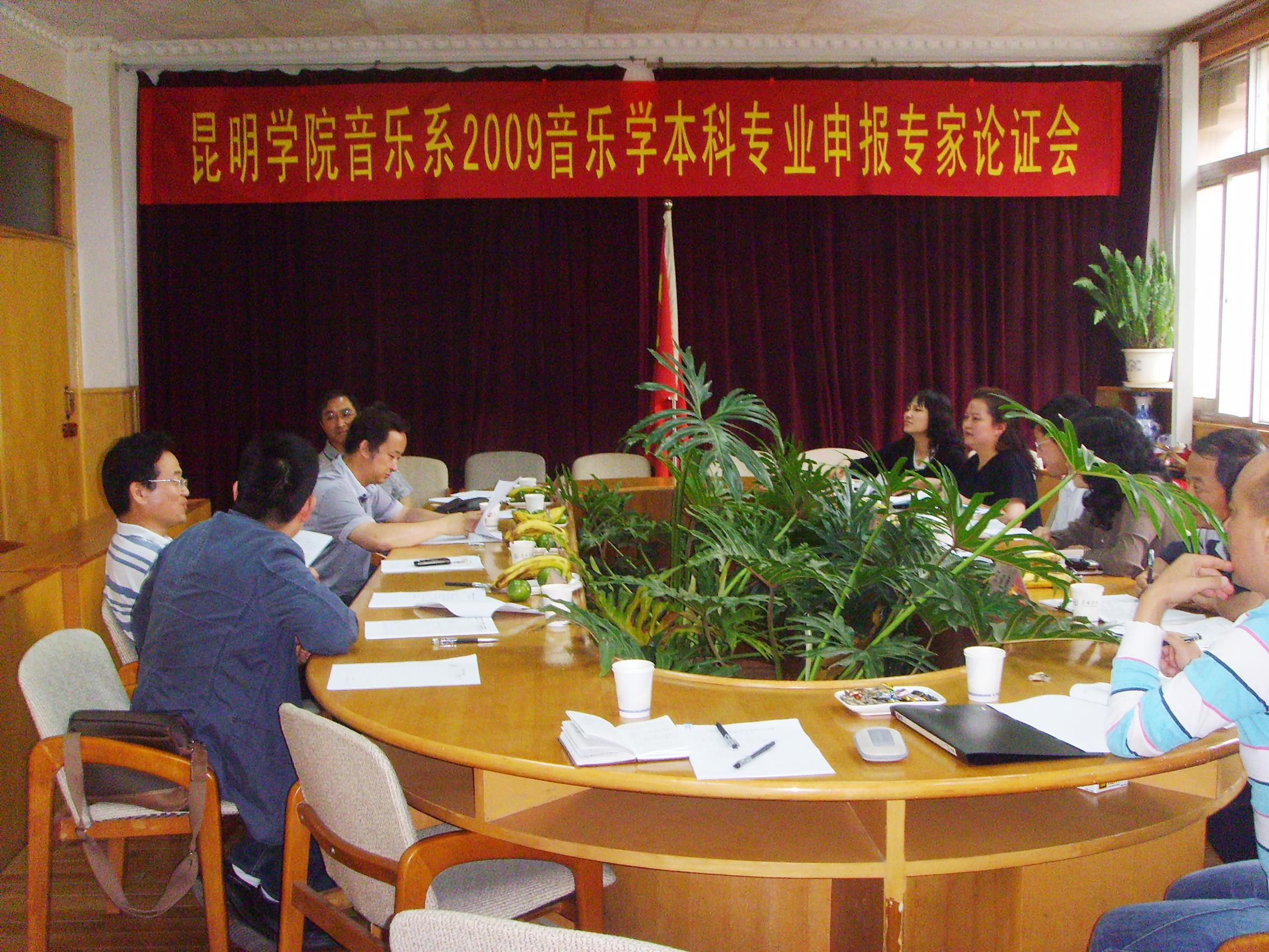 5月25日上午,音乐系音乐学本科专业申报专家论证会在龙泉路校区二楼会议室召开。学院副院长罗明东教授、教务处郝旭霞处长、云南艺术学院副院长陈勇教授、云南师范大学艺术学院院长施荣华教授、云南艺术学院教务处副处长丁煜伦副教授、云南省教育科学研究院体育艺术研究室王信东副主任、我院音乐系系主任靳丽芬教授、音乐系党总支副书记王耀勇老师等参加了论证会。论证会由教务处郝旭霞处长主持。