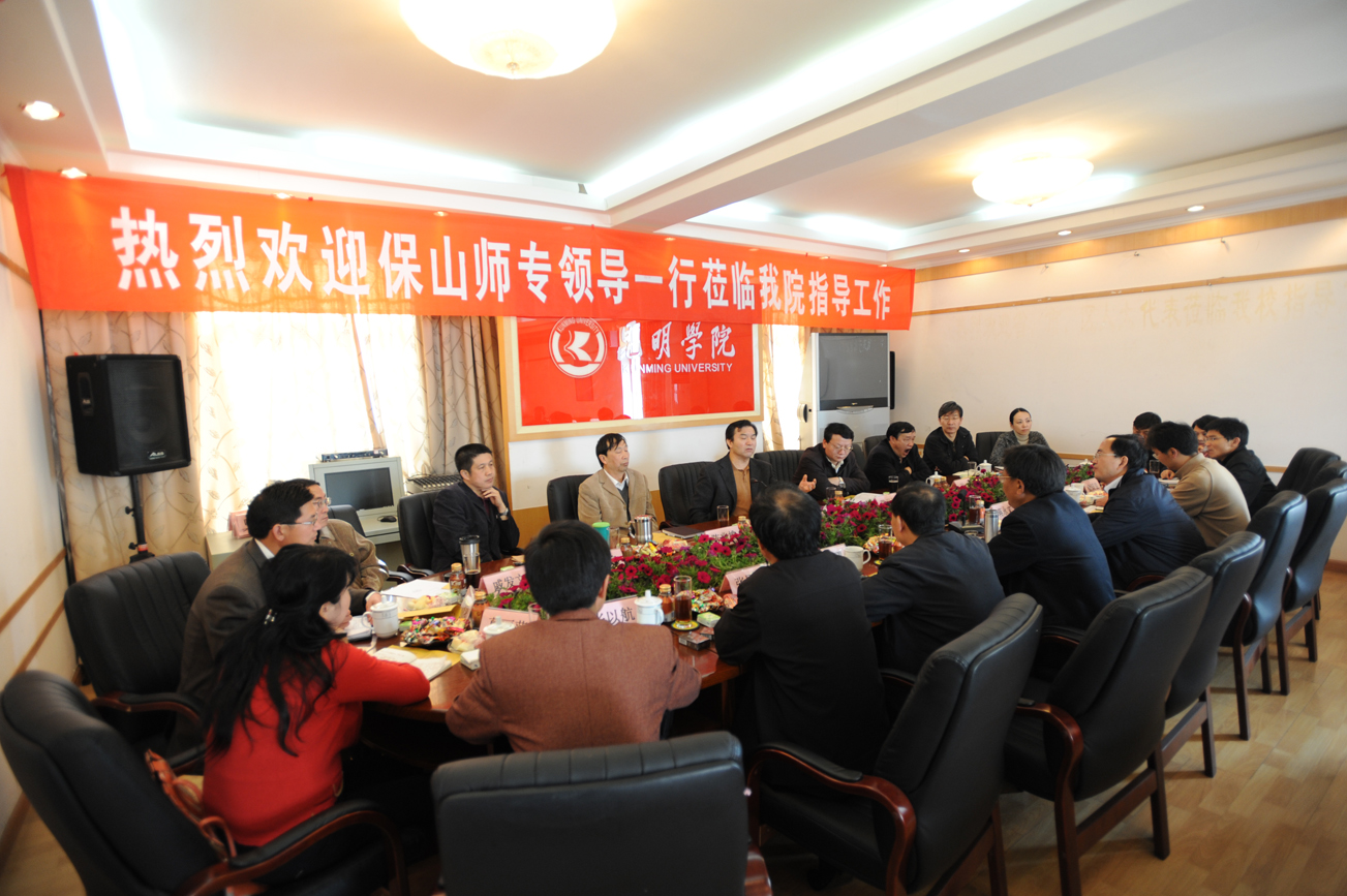 4月8日至9日,保山师专党委杨书记、蒋校长、龙副书记、张副校长及党委办公室、校长办公室、组织人事部、招生就业处负责人一行9人前来我院考察交流。