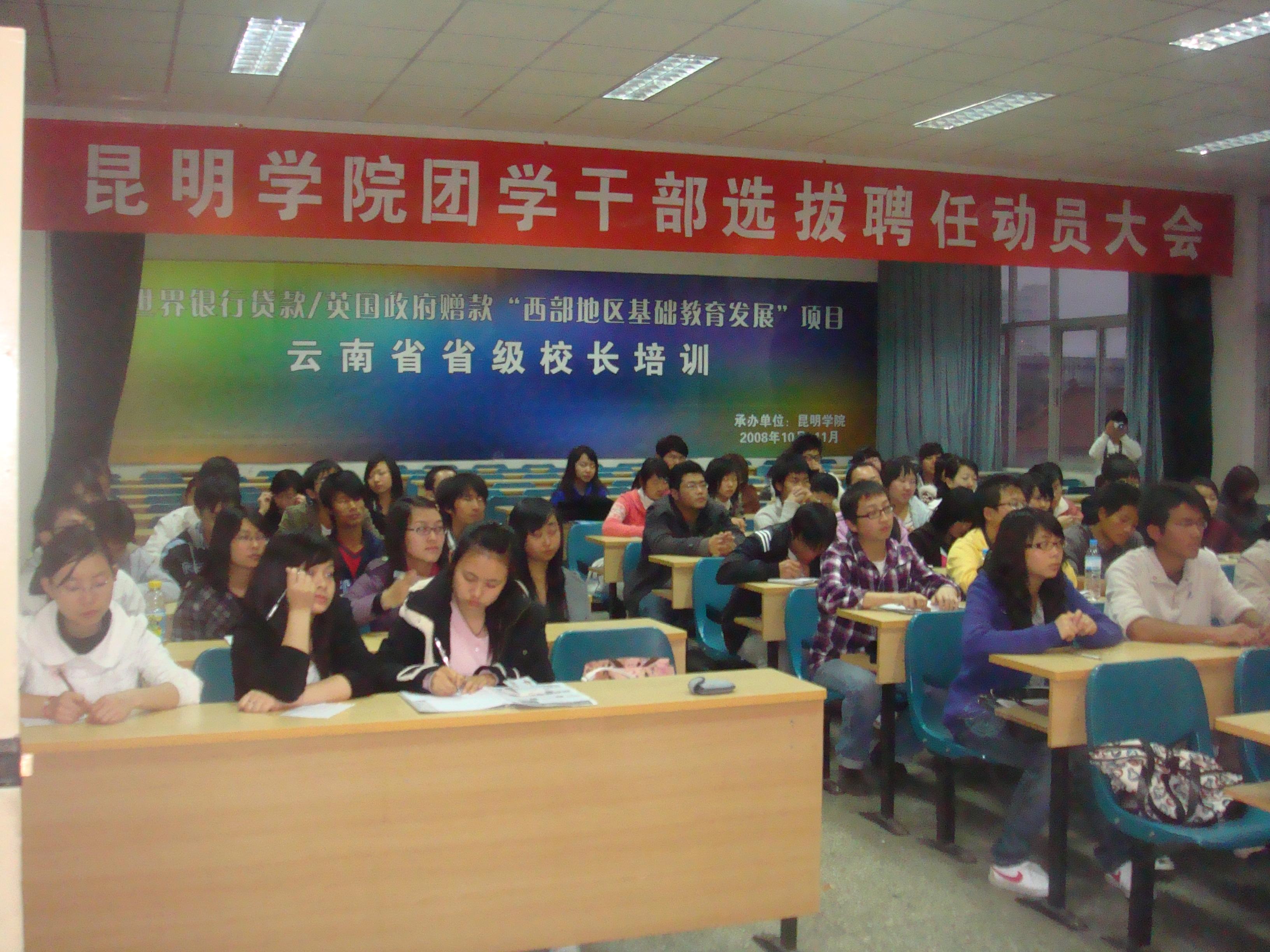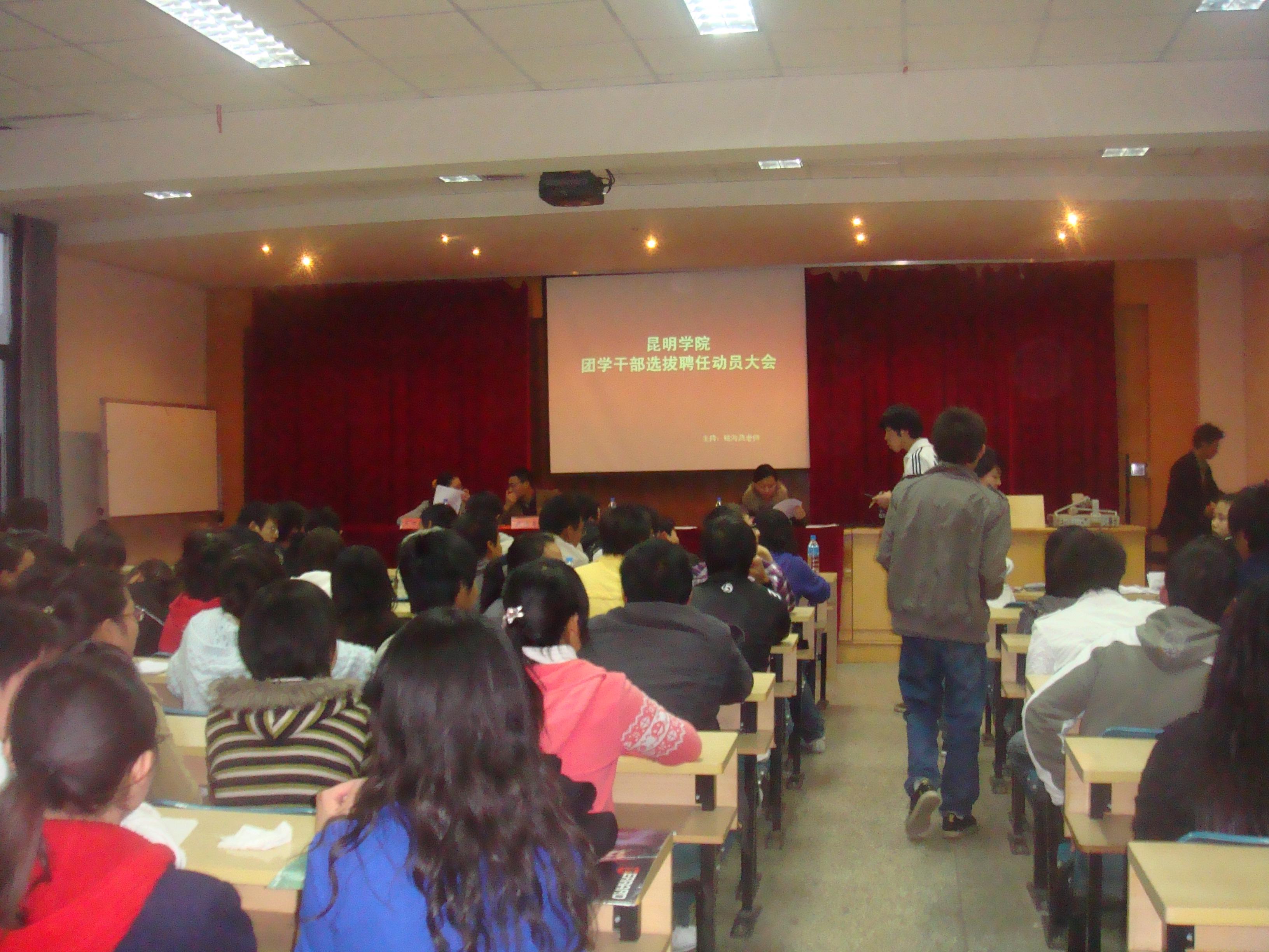 3月6日晚7点,beat365英国官网团学干部选拔聘任动员大会在昆师路校区5402报告厅召开。团委书记何俊,副书记钱海鼎、王海艳,团委全体干部以及各校区团学干部代表出席了本次会议。