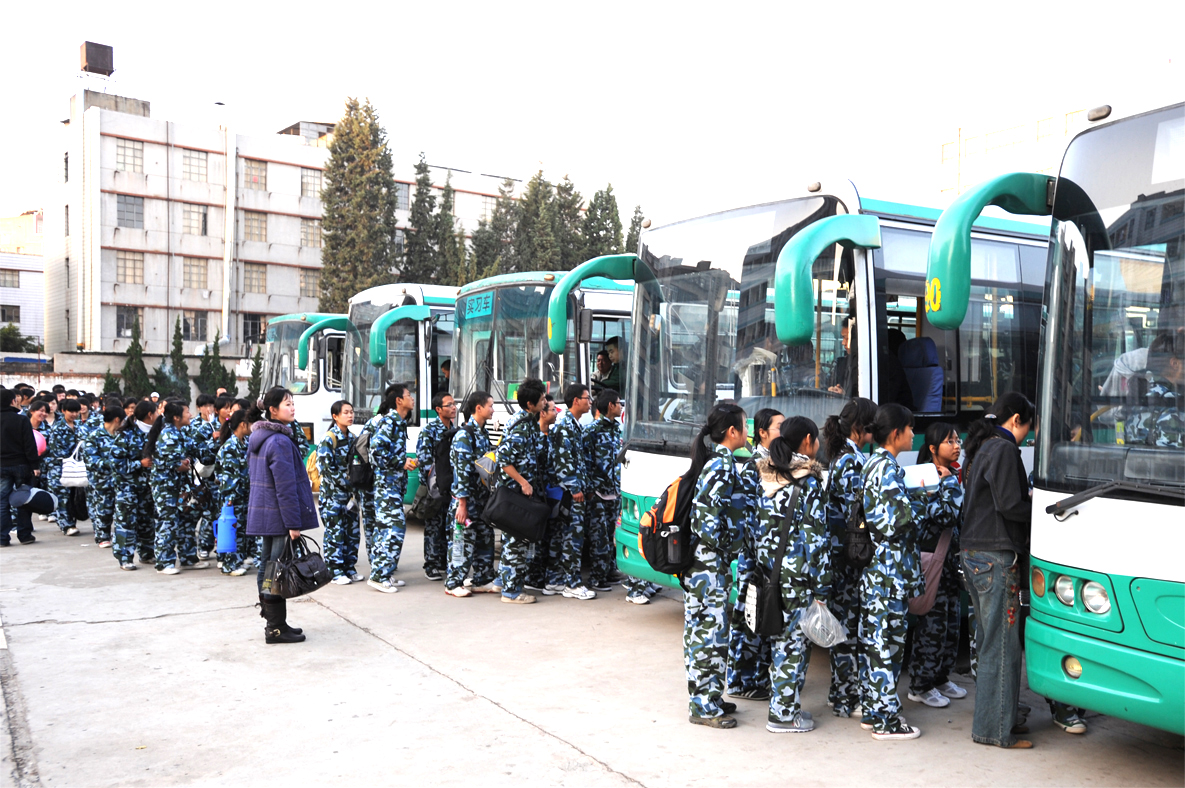 8点20分,各系军训队伍在学生处和保卫处负责人及老师们的指挥下分批登车出发,前往军训地——昆明陆军学院。从这一刻起,beat365英国官网2008级本、专科新生,正式踏上了为期两周的军训之旅,他们将在全新的军营环境中去体验和锻炼,用行动去谱写自己的军营生活新篇章。