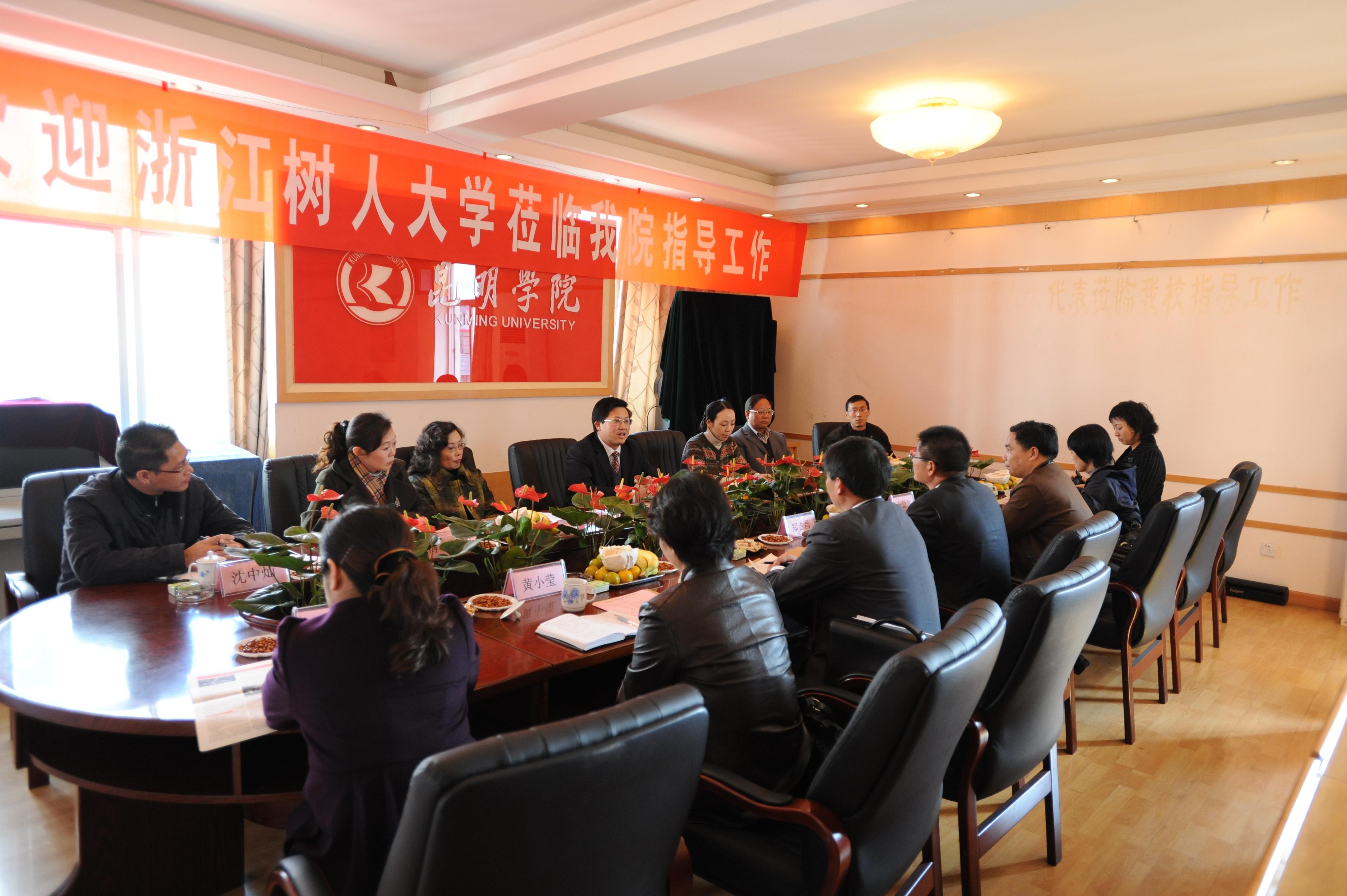 罗明东副院长出席学院举行的欢迎座谈会,教务处、党办、现代教育技术中心、经济系、社会科学与人力资源系和文学与新闻传播系负责人参加座谈。罗副院长代表学院党政对浙江树人大学郑吉昌副校长一行到我院传经送宝、进行工作交流表示热烈欢迎;向来宾介绍了学院基本情况、办学方向、办学特色和办学模式等,并结合现代新昆明建设和云南经济社会发展,向来宾介绍了我院发挥地方院校的特色和优势、更好地为地方经济社会发展服务的思路、战略规划构想和工作计划;宾主双方就探索和把握地方本科院校办学基本规律、提高教育教学质量等方面进行了广泛的交流;来宾还参观了经济系证券投资实验室。
