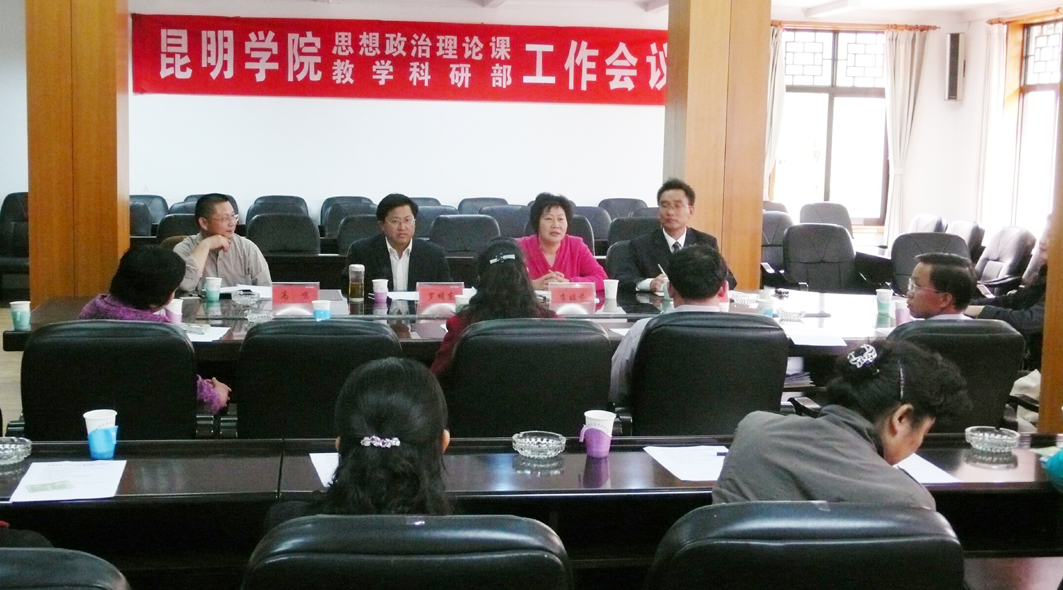 beat365英国官网为了加强思想政治理论课,由社会科学与人力资源系原“两课”教学人员和原昆明师专“两课”教研室组建成立了beat365英国官网思想政治理论课教学科研部,共32位教师。经过系部整合后的思想政治理论课教学科研部,为进一步推进工作,于10月30日下午,召开了全体教师工作会。学院思想政治理论课建设领导小组组长李媛芬副书记、副组长罗明东副院长、宣传部负责人出席了会议。
