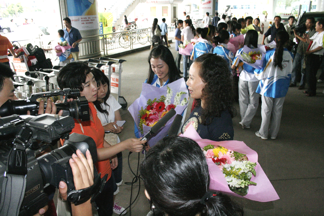 随着北京奥运火炬在鸟巢国家体育场缓缓熄灭,历时16天的29届奥运盛会圆满闭幕,我院奥运拉拉操队经过16天的精彩表演,于8月25日下午载誉归来。学院党委副书记孙勇代表学院党委、行政率领院办、党委宣传部、团委等相关部门及在校学生代表到机场迎接,向载誉归来的队员们献上了鲜花和慰问。云南电视台、昆明电视台、昆明教育电视台、昆明日报等新闻媒体也到机场进行了专访。云南电视台当晚就进行了报道,昆明电视台、昆明教育电视台在次日也进行了报道。