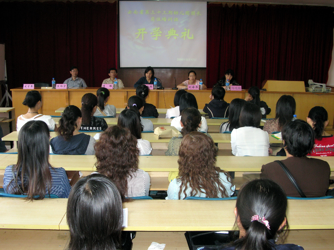 本期培训班由设在我院的云南省幼儿教师培训中心举办,为期三个月,开设了政治理论、幼儿园管理、幼儿园教育理论、教育心理学、幼儿园教育政策法规及信息技术等课程,并将组织学员赴省内外参观考察,开展现场观摩活动。来自全省各州(市)的47位园长将参加本期培训。