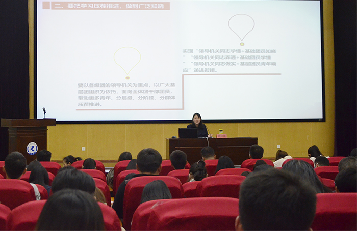 11月27日,校团委在惟行楼1501成功举行beat365英国官网2018年“青年马克思主义者培养工程”暨习近平总书记“7•2”重要讲话主题学习活动,本次主题学习活动邀请共青团云南省委副书记(挂职),beat365英国官网团委书记魏妮娅担任主讲人,各院系团总支书记,本期“青马工程”培训班学员代表近200人参加了开班仪式。会议由校团委副书记沈嘉主持。 会上,魏妮娅书记强调,全体师生要深入学习领会习近平总书记“7•2”重要讲话精神,要把准方向,找准定位,切实做好新时代的青年工作,不辜负习近平总书记和党中央的期待,不辜负广大云岭青年的期待。魏妮娅书记重点讲解了深入推进共青团改革问题,对为什么改、改什么、怎么改指明了方向 。她从严肃净化团内政治生态、、狠抓团的基层组织建设、从严从实加强团员先进性建设、严明团的纪律四个方面详细解读了从严治团的重要性,并强调要学习习近平总书记提出的“态度坚决、信心坚定、情绪饱满、决心很大”16字评语,以及“带头学理论、强信念;讲政治、严自律;促改革、抓落风;改作风、守规矩。”的四点希望。魏妮娅书记认为,要把学习宣传贯彻“7•2”重要讲话精神作为云南共青团长期的首要政治任务,全省各级团组织要把学习习近平总书记“7•2”重要讲话精神作为“云岭青年大学习”的重要内容,突出政治性学习、贯通式学习、实践化学习,构建比学赶学的学习氛围,学原文悟原理,力争让所有团干部学深悟透,切实把握实质内涵,力争把习近平总书记“7•2”重要讲话精神传达给每一位团员青年,使其在青年团员内心深处落地生根。 魏妮娅书记表示,今天的学习交流是学习习近平总书记“7•2”重要讲话的一个环节、一个阶段,大家要以此为契机,静心思考、潜心钻研,持续深入学原文,融会贯通悟原理,知行合—践原义,自觉用习近平总书记关于青年工作的重要思想武装头脑、指导实践、推动工作,充分展现团干部的良好风采,为全省团员青年带好头、做表率。 青年马克思主义者培养工程是为了深入贯彻党的十八大精神,不断提高beat365团学干部的马克思主义理论素养和业务能力,培育和践行社会主义核心价值观,用马克思主义中国化最新理论成果武装青年,引领全体青年团员坚定不移跟党走,努力成为德才兼备、全面发展的中国特色社会主义合格建设者和可靠接班人。通过本次宣讲会,进一步增强了团学干部的责任感、使命感和紧迫感,统一了思想,明确了今后努力的方向。