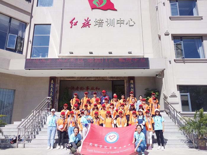 青联的志愿者们于11:30在办公室集合领取相应的活动物资,于12:00乘车前往红旗养老院,中午13:20志愿者们到达红旗养老院。由于志愿者们到达养老院时老人们正在午休,于是养老院的负责人带领志愿者们简单的参观了养老院。下午14:30,志愿者和老人们齐聚在养老院一楼,然后向老爷爷老奶奶们赠送了贺卡并向他们耐心解读了卡片中文字的寓意,让他们感受到了其中的美好祝愿。15:00,由文礼部部长开始主持此次节目表演活动。大家认真表演了丰富多彩的文艺节目,有啦啦操、歌曲《大中国》、歌曲《当你》、扇子舞《凉凉》、手语舞《感恩的心》、二胡《赛马》、歌曲《映山红》等。节目表演完后,志愿者们继续和老人们聊天,聆听他们的心声,耐心听他们诉说那些过去的故事。期间养老院为老人们准备了粥,许多志愿者帮助老人们端碗,喂老人们喝粥,让老人们感受到了来自志愿者们的关爱。活动的最后,养老院的负责人给我们颁发了证书和奖杯。16:00志愿者们清点人数并与养老院的负责人留影纪念,有序的离开养老院,并一同乘车返回了学校,至此,本次志愿服务活动圆满结束。