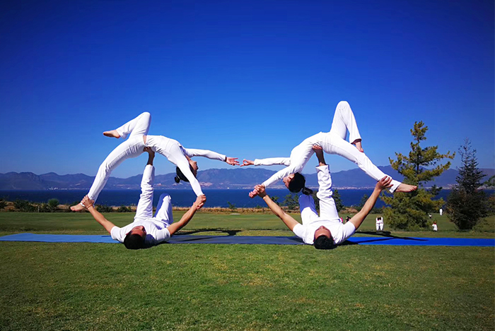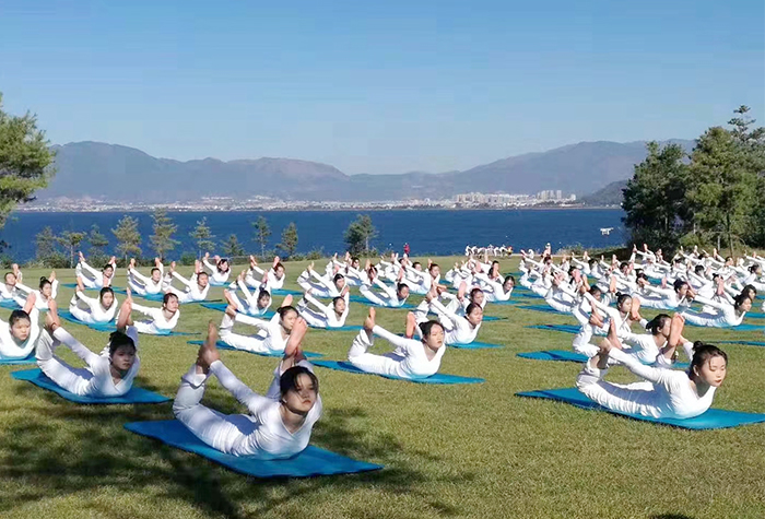 11月18日上,由玉溪市体育局、澄江县人民政府主办,beat365英国官网、云南省学生体育协会、云南博捷体育赛事策划有限公司承办的“2018年云南抚仙湖国际瑜伽文化节”在美丽的澄江抚仙湖畔隆重举行。beat365英国官网瑜伽代表队及由百名公共体育课学生组成的表演团队,分别进行了大型团体表演和分场展演,场面精彩、动作惊艳,得到了现场嘉宾、评委和观众的一致好评。