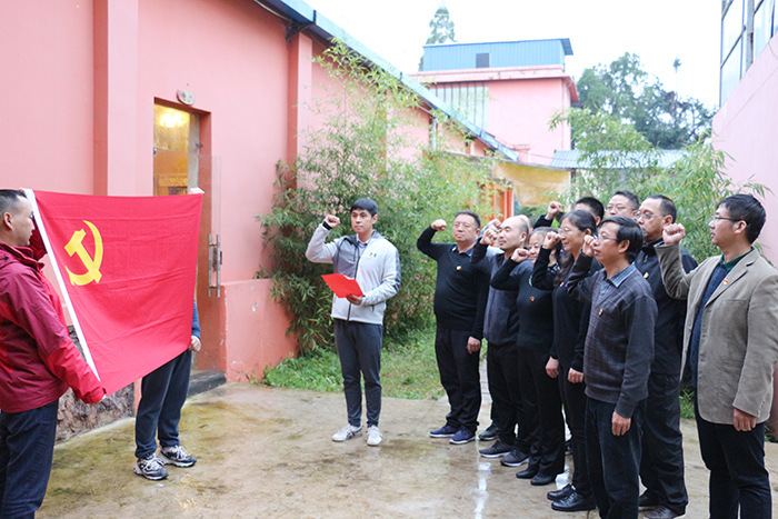 素质拓展活动结束后,党总支为10月份入党的教师党员申浩如老师送上了政治生日贺卡,并在他的带领下支部全体党员重温了入党誓词。在激昂铿锵的宣誓声中把本次活动推向了高潮,每位党员心中更加坚定了发挥党员模范带头作用,为党支部建设贡献力量的信心和决心。