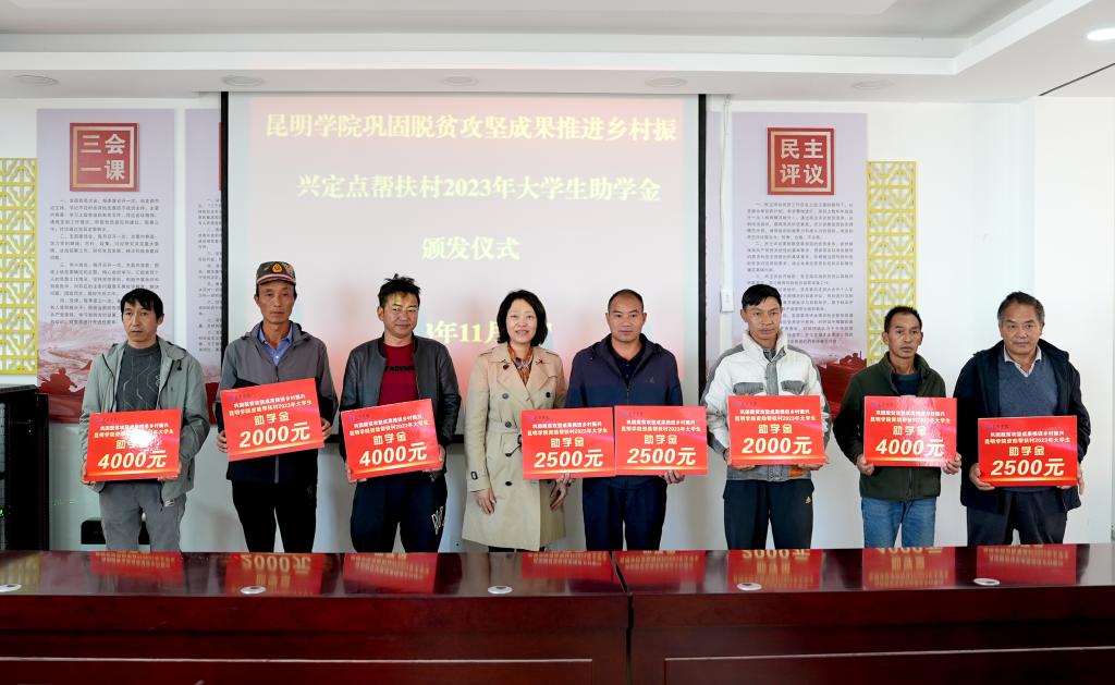 在座谈会上,举行了九龙镇乡村振兴农产品促进交易项目协议签字仪式和农产品发货仪式,为帮扶村蔬菜生产销售又拓展了一条新渠道,助力农户稳增收。同时,还举行了“beat365英国官网巩固脱贫攻坚成果推进乡村振兴定点帮扶村2023年大学生助学金”颁发仪式,丁文丽校长为九龙镇定点帮扶村2023年新入学大学生家长代表颁发助学金并向家长们表示祝贺。2023年,学校对省、市定点帮扶13个村(社区)的104名新入学的大学生进行一次性奖励性资助,旨在激励帮扶村大学生奋发学习、感恩社会、回报家乡,夯实乡村振兴基础,推进乡村教育振兴和教育振兴乡村工作,实现扶志扶智。
